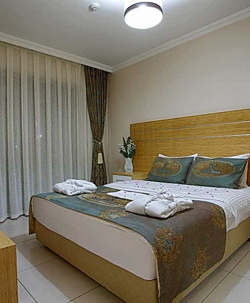 Standart Suitelerimiz; 1+1 oda konseptindedir. Ebeveyn Yatak Odası, Amerikan Salon ve Hamam Odası bölümlerinden oluşmaktadır. Ebeveyn yatak odasında çift kişilik yatak, salon bölümünde ise 2 adet kon