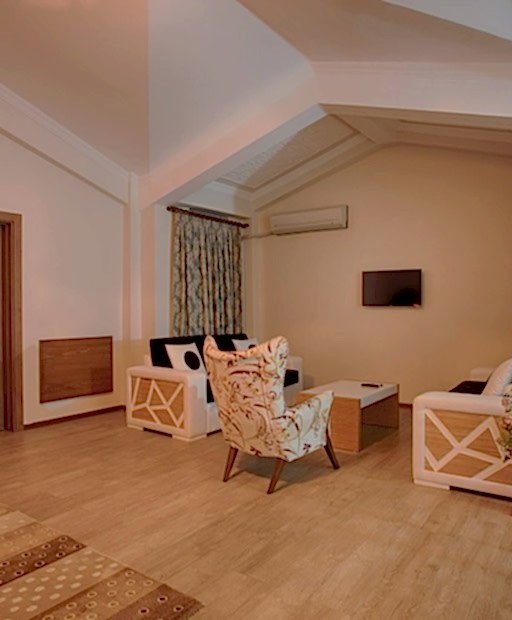 Havuzlu Suitelerimiz; 1+1 oda konseptindedir. Ebeveyn Yatak Odası, Amerikan Salon ve Hamam Odası bölümlerinden oluşmaktadır. Ebeveyn yatak odasında çift kişilik yatak, salon bölümünde ise 2 adet konf